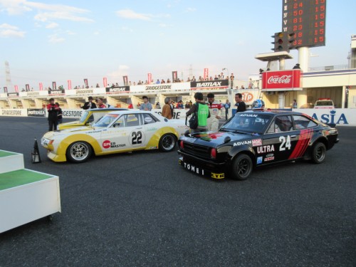 セリカへの追撃を開始、24号車、23号車もサニー同士での激しいバトルが展開されます。