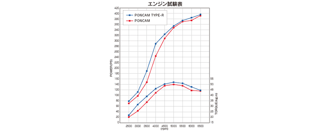 エンジンチューニングとは、一般的にカム作用角とリフト量を変更してエンジンのトルク特性を操作することで、最大トルクを上げたり、発生点を高回転側にして最高エンジン出力を上げることです。