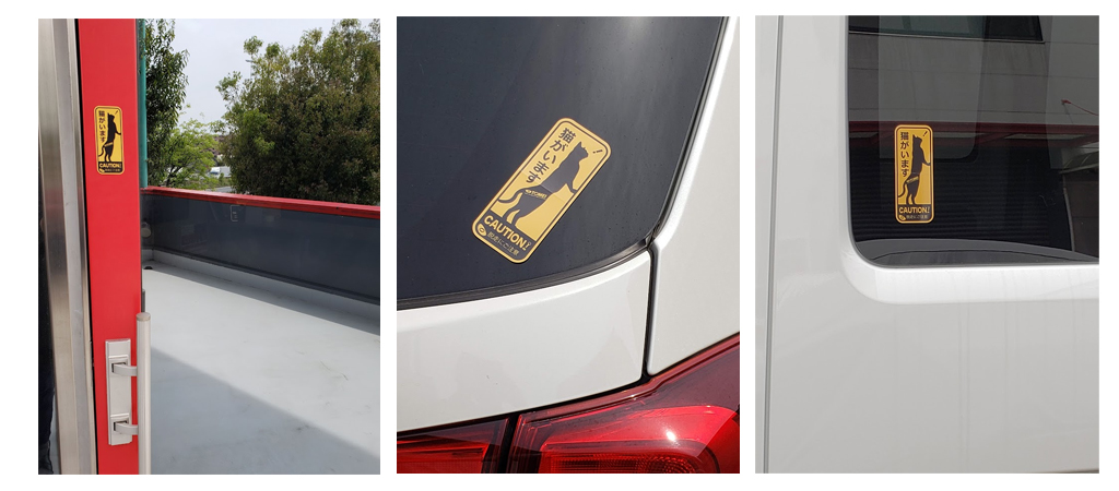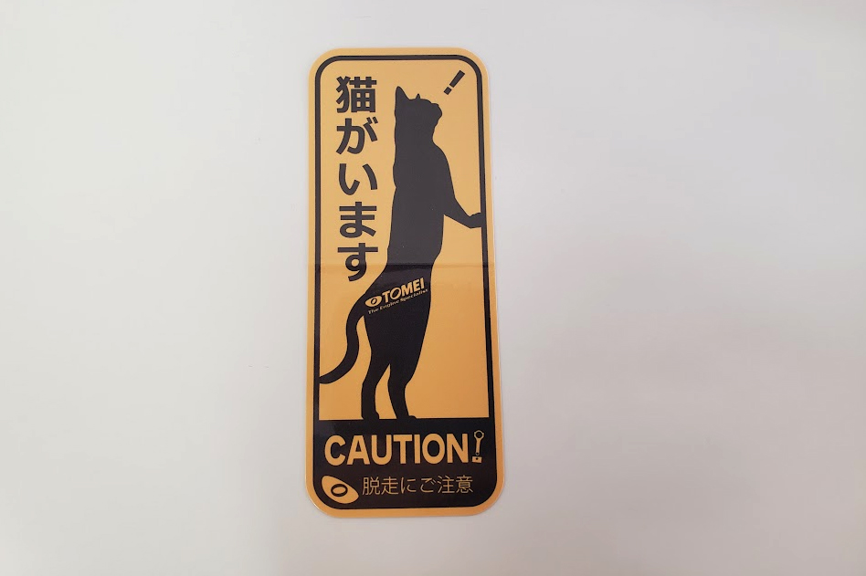 玄関などに貼り付けて猫がいる事を知らせる目的としたステッカーです。