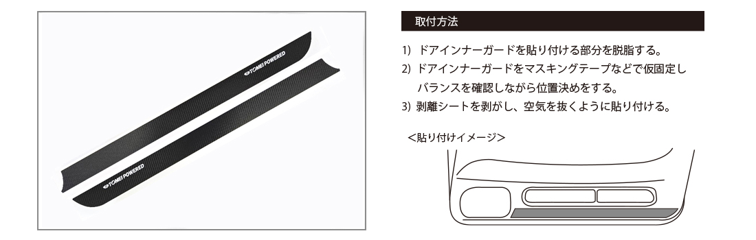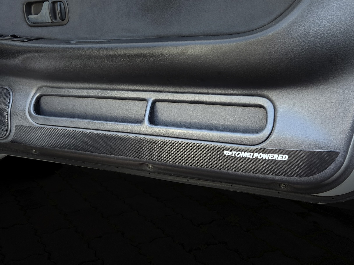 This is an item designed to prevent scratches and dirt, as well as to enhance the interior of the door. The seat, made from high-quality urethane leather material that realistically reproduces the texture of carbon fiber, is stretchable and easy to apply, making installation simple.