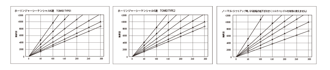 | ギア比 | TOMEI TYPE1 | TOMEI TYPE2 | 特注(例) | ノーマル |