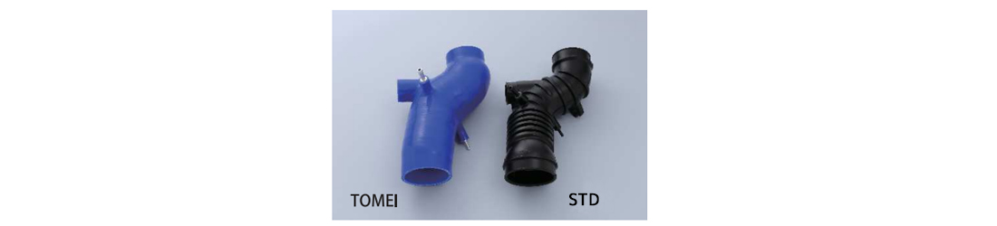 TOMEI Turbo Suction Hose Kit for 4G63 EVO7-9 has been designed to maximize the air flow with increased chamber volume and optimized structure eliminated the bellows shape seen on STD hose.