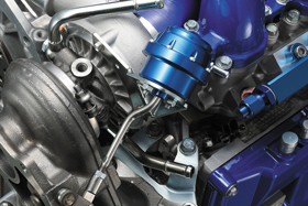 | タービンにより過給された空気がスロットルを閉じることで行き場を失い、パイプ内に留まることでタービンの回転を急激に 止めようとする力が働き、タービンに大きな負担が掛かってしまいます。 これを防ぐためにタービンとスロットルの間にブローオフバルブ設置し、行き場を失った空気をエアフロとタービンの間に循 環させ、タービンを保護するのがブローオフバルブの役割です。 ノーマルブローオフバルブを高過給圧で使用した場合ある程度の過給がかかるとわずかにリリーフしてしまうため、タービン の性能をフルに発揮出来ず、ピックアップが悪くなったり、最高出力が落ちてしまう場合があるので、強化タイプの使用をお 薦めします。 また、ブローオフバルブのリリーフを大気解放にした場合、タービンに対しては再循環した場合と同様の働きがありますが、 エアフロメーターの誤作動の原因になります。必ず再循環させてください。 Without a blow of valve, the compressed air from the turbo when the throttle is suddenly closed would have no where to go and excessively stress the turbo due to a force then generated and tries to stop the turbo from spinning at a very high rpm, The blow off valve protects the turbo, however the stock blow off valve tends to keep releasing boost under high boost and it causes poor response and less peak power. It is not recommended to use a vent-to-atmosphere type when MAF sensor is used for engine management as it causes the ECU not being able to obtain the correct air mass readings that leads to improper A/F ratio. | |