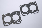 | EJはノーマルヘッドガスケットもメタル製ですが、高ブーストをかけた際の高い燃焼圧力には不安があります。 そこで、面圧の安定したメタルヘッドガスケットに変更することでシール性能を高めることが出来ます。 かけるブーストによってガスケット厚を変更し、圧縮比調整を行ってください。 Although the stock head gaskets of EJ series engines are metal type gaskets, there is still a good chance of being blown under high boost due to significantly increased combustion pressure than they are designed to deal with, that can be prevented by evenly stabilize the deck surface pressure using reinforced gaskets. Choose gasket thickness to achieve desired boost setting and compression ratio to suit each set up | |