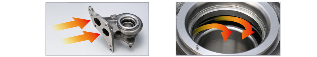 こだわりのハウジング、ツインスクロール形状Special housing design & Twin Scroll Construction
