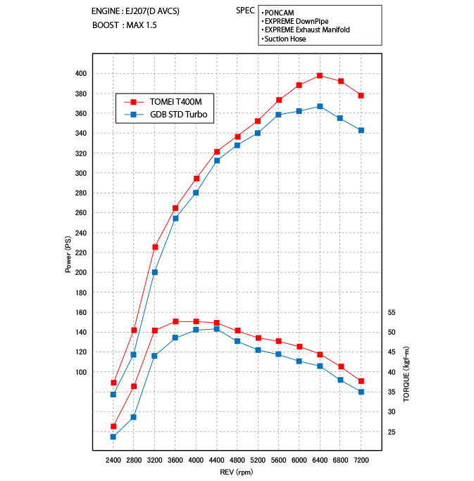 TOMEI T400M is designed for superior performance at very wide range of engine speed with the combination of the IHI center unit and the twin scroll turbine housing.