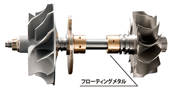 | シャフトの軸受け部にはフローティングメタルを採用しています。 High quality floating journal bearing at the center shaft. | 高過給時においても安定した過給圧が得られます。Remarkable stability under high boost. |