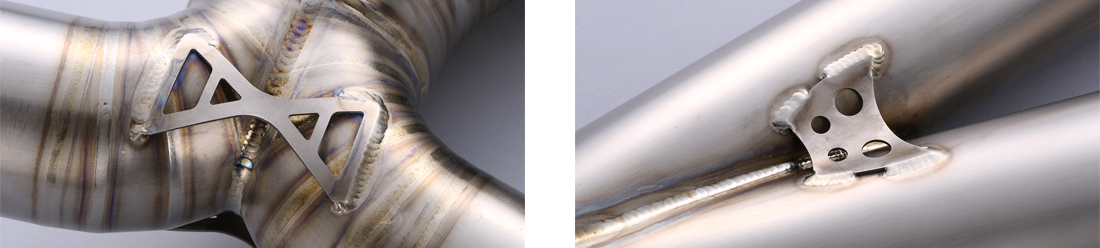 負荷が考えられる箇所となるYパイプとメインパイプ部分には、それぞれに補強板を施し、剛性と耐久性を向上させています。