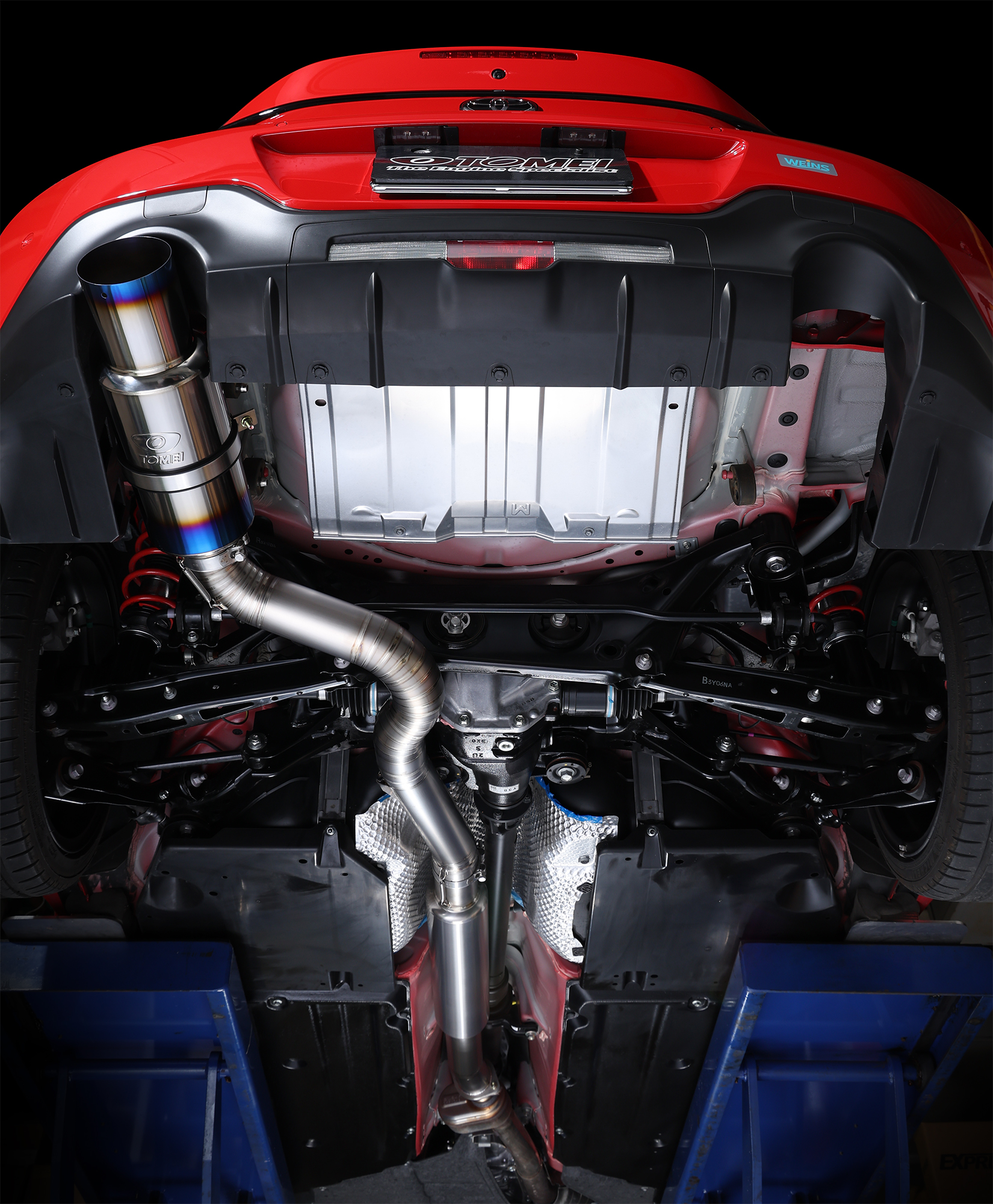 テールエンドEND TIP Φ115スラッシュカットのテールエンド。チタンブルーの焼き色を配し上部にはTOMEIロゴをレーザー刻印する事で テールエンドをスポーティーに演出しています。 115mm Slant-cut end tip.Titanium blue with laser marked TOMEI logo on the end tip. They together give it the great appearance and prove the best quality. |