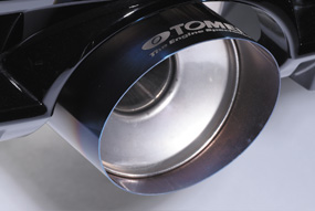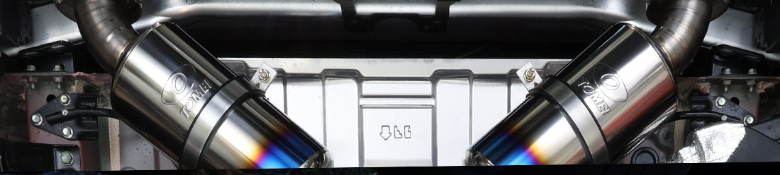 テールパイプEND TIPS バンパー形状やお好みに合わせたエンドの張り出し調節ができるスライドテールを採用したΦ120スラッシュカットのテールエンド。チタンブルーの焼き色を配し上部にはTOMEIロゴをレーザー刻印する事でテールエンドをスポーティーに演出しています。 Slash-cut, 120mm slide-able end tips can adjust the rear style to suite each bumper shape and preference.Titanium blue with laser marked TOMEI logo on the end tips.They together give it the great appearance and prove the best quality. |