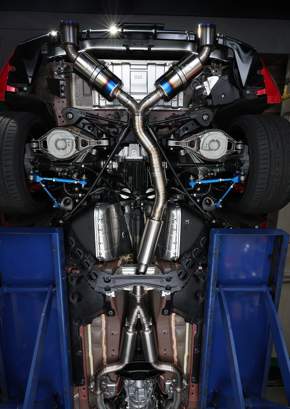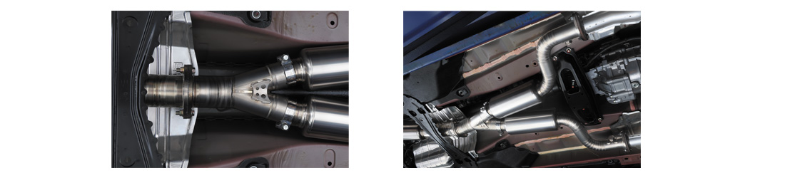 車高が低い車両でも十分なロードクリアランスを確保できるレイアウトを考慮した設計と、純正でのサブサイレンサー後からの絞りを廃し、ミッドYパイプからの完全Φ80ストレート化。