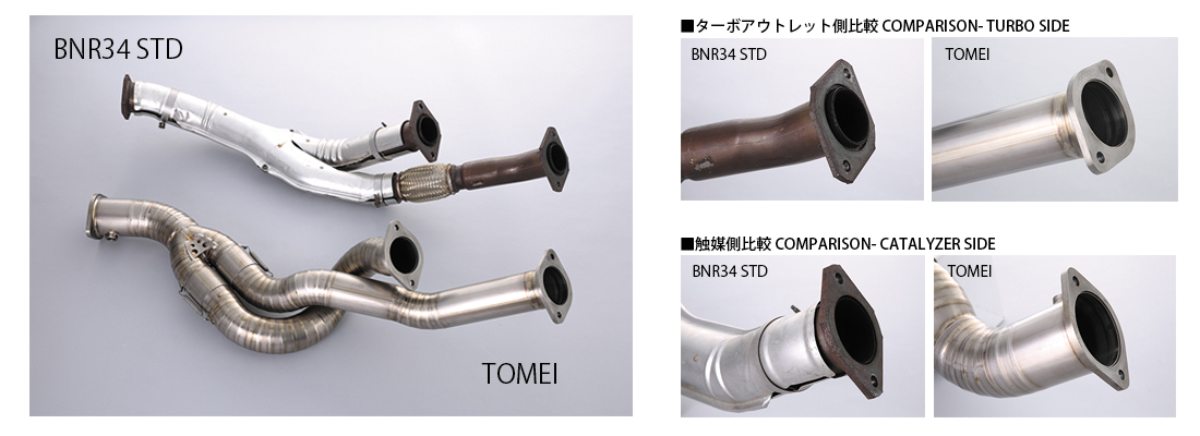 また、純正や、RB26デビュー当時に主流であった細いタイプのフロントパイプに交換し使用している車両からの交換は十分にその効果を感じていただける製品です。