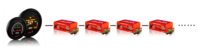 | MultiGauges™(DM-6やDM-100シリーズ)ディスプレイおよびセンサーは各最大16個まで複数接続できます。 |